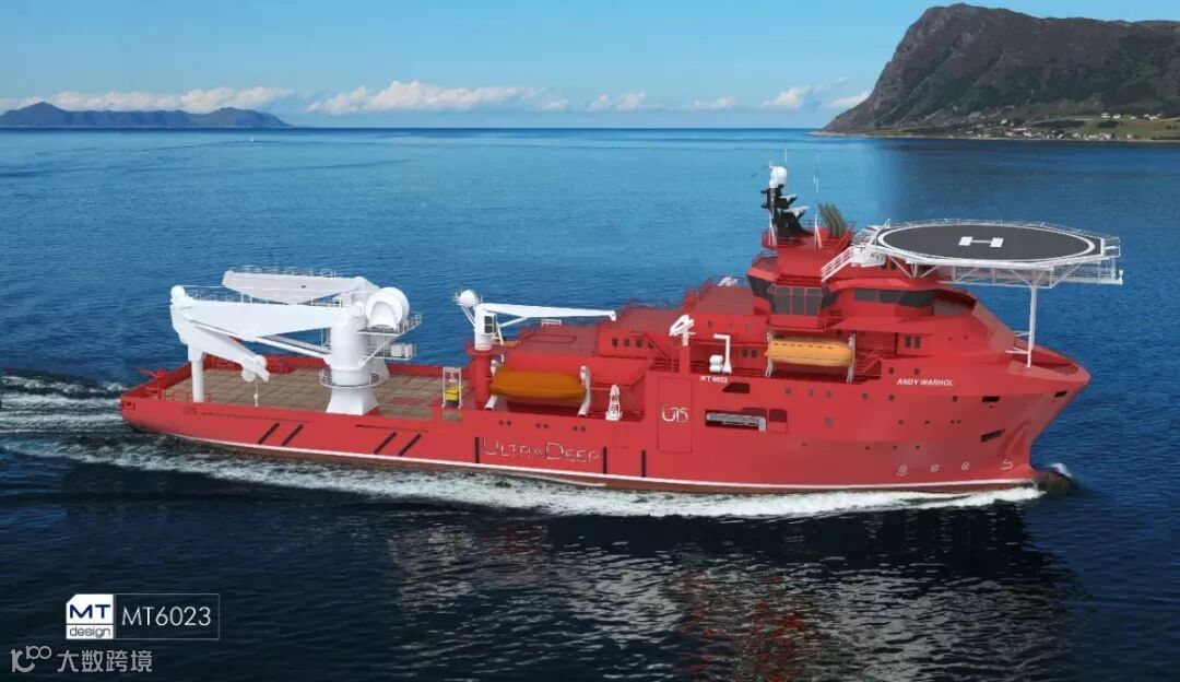 MT6023 深潜水工作支持船入DNV船级社,集饱和潜水支持、油田守护、浮油回收、ROV、DP2、FIFI2等功能于一体。船上将配备1台150吨海工吊,具有升沉补偿功能;1套18人饱和潜水系统,最大工作深度为300米;2套ROV装备,可在3000米水深工作。