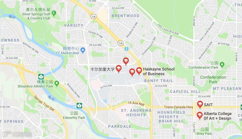 卡大的主校区,位于卡尔加里西北部,占地面积超过200公顷。
