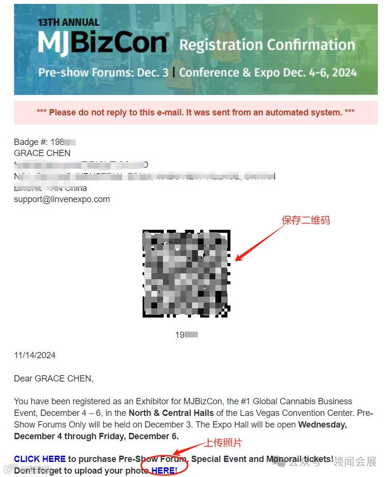 可在展商报到处出示入场二维码,扫码换取正式入场证(已通过邮件发送到各位邮箱,及时收取并确保有上传照片),并携个人带照片证件现场领取。