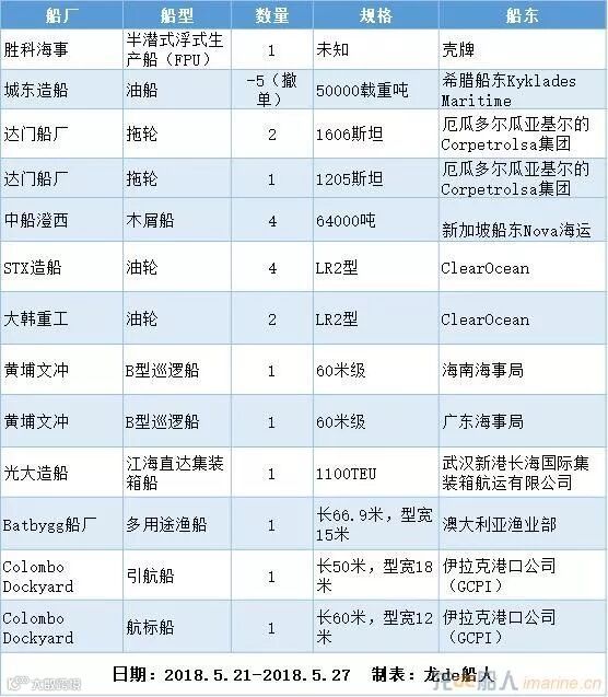 其中,油轮6艘,集装箱船1艘,海工项目1座,其它船型12艘,被撤单的5艘为油船。