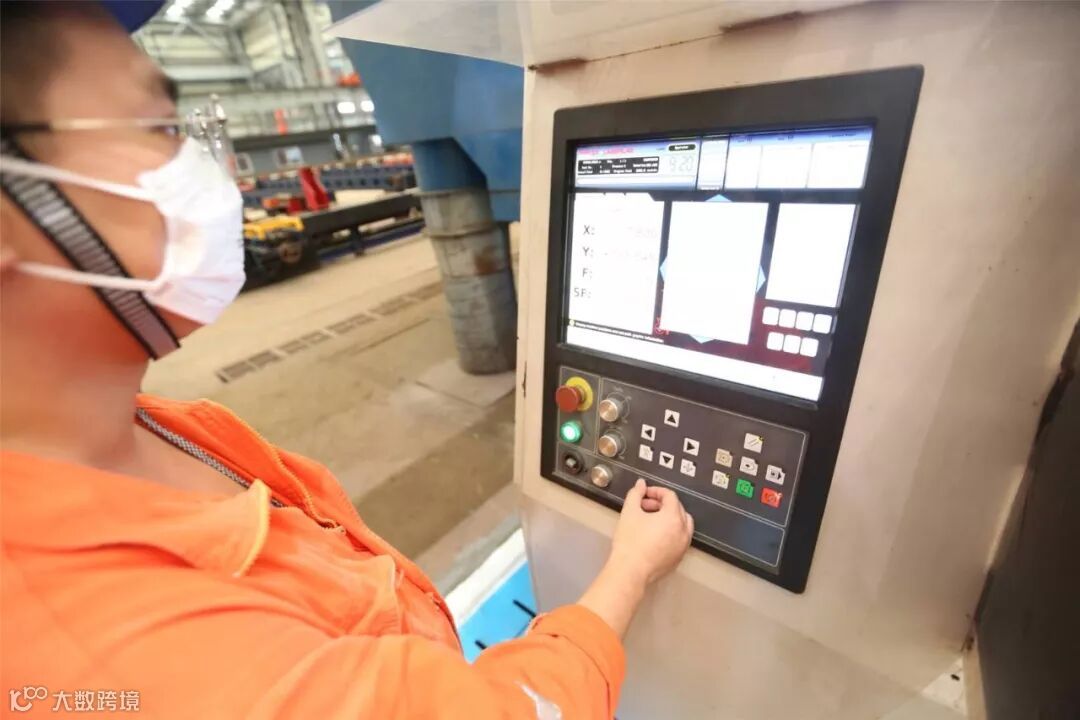 上海打捞局局长洪冲,挪威海洋安装公司创始人斯戴那瑞斯,海洋石油工程股份有限公司副总裁于长生,天海融合防务装备技术股份有限公司董事长刘楠,武船集团党委书记、董事长杨志钢,武船集团北船重工党委书记、董事长韩兵共同启动切割按钮。