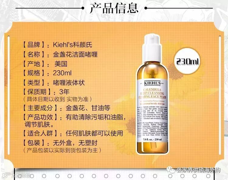 美国kiehls科颜氏金盏花深层泡沫洁面洗面奶