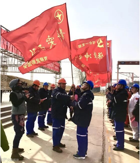 2018年, 双柳武船发起了“凝心聚力、攻坚克难,打好在制产品攻坚战”的动员令。为鼓励青年团员,奋勇争先为,双柳武船党委组织了题为“新时代,新使命,不忘初心,凝心聚力,奋勇冲刺的”授旗仪式,仪式中专门授予“青年突击队”队旗一面,这是对青年突击队的肯定,更是激励。