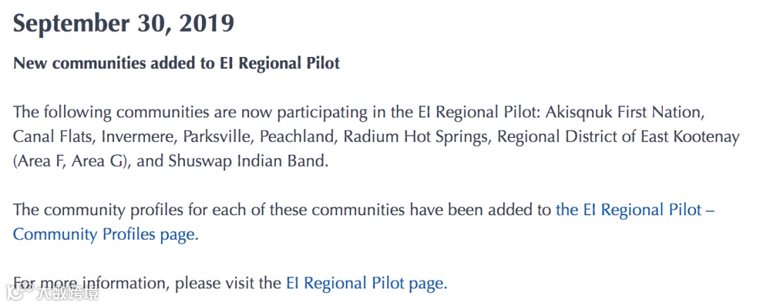 这8个新社区是:Akisqnuk First Nation、Canal Flats、Invermere、Parksville、Peachland、Radium Hot Springs、Regional District of East Kootenay (Area F, Area G)及Shuswap Indian Band。
