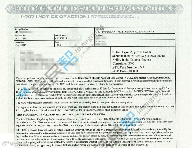 移民帮客户W先生在申请NIW时无补件获批,用时仅有8个月。