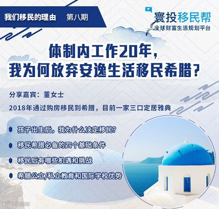 点击左下角【阅读原文】,查看“体制内工作20年,我为何放弃安逸生活移民希腊?”直播讲座。