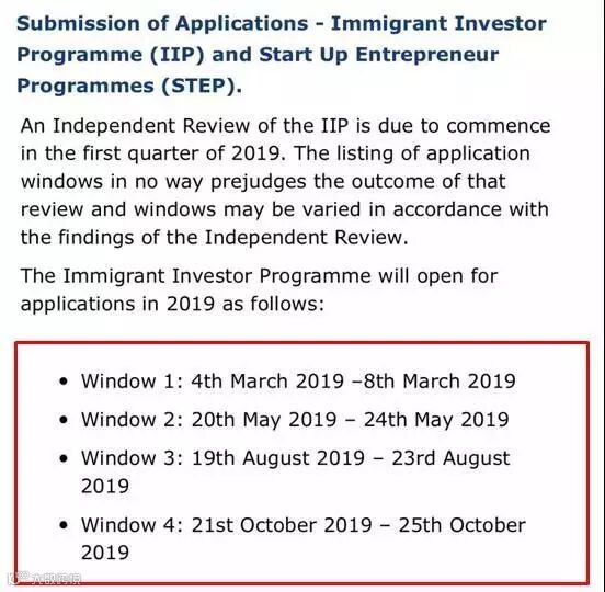 2018年12月17日,爱尔兰移民归化局(INIS)正式公布爱尔兰投资居留计划(IIP)2019年的递交窗口期,窗口期数量将从2018年的5次减为4次,时长从2018年的两周缩短为5天,而且爱尔兰司法部还将加强针对投资移民的尽职调查和审核,如反洗钱等。