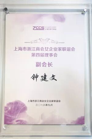 今年8月,钟建文女士成功当选上海市浙江商会(以下简称商会)理事(相关阅读)。
