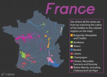 1,各个产区采用不同的颜色标注,在下图中可对照瓶子颜色识别.