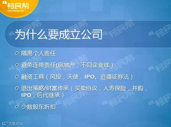 这也是在美国用得比较多的公司形式。专业公司比如会计师或者建筑师,需要专门的执照才能做。关于S公司和C公司,其实成立公司时,并不分S和C,需要上市去融资和退出时,一般用到的是C公司,C公司相当于国内的有限责任公司,责任限制在当时投资公司的资金上,缺点是有双重征税,即公司层面的征税和股东层面的征税。S公司责任也限定在公司,但它在公司的层面不征税,S公司最多只有100个人做股东,同时外国人不能作为股东。