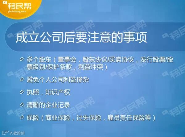 所以,一定要看企业发展到哪个阶段,同时要达到何种目的,然后再选择适合自己的公司形式。公司成立以后,还有很多的问题要注意,比如公司需要董事会、股东、协议,以及发行股票等等。