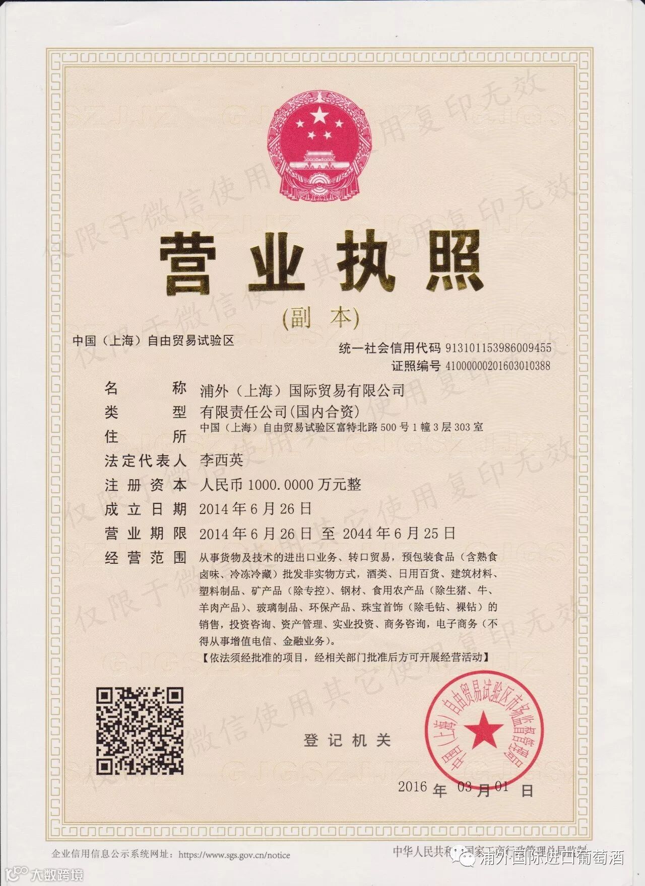 2014年6月在多年老客户的支持下,公司入股澳大利亚酒庄股东,在上海自由贸易区成立——浦外(上海)国际贸易有限公司,借国家多重优惠政策,让更多的国人已最高的品质 最低的价格,喝上真正的原瓶进口葡萄酒!