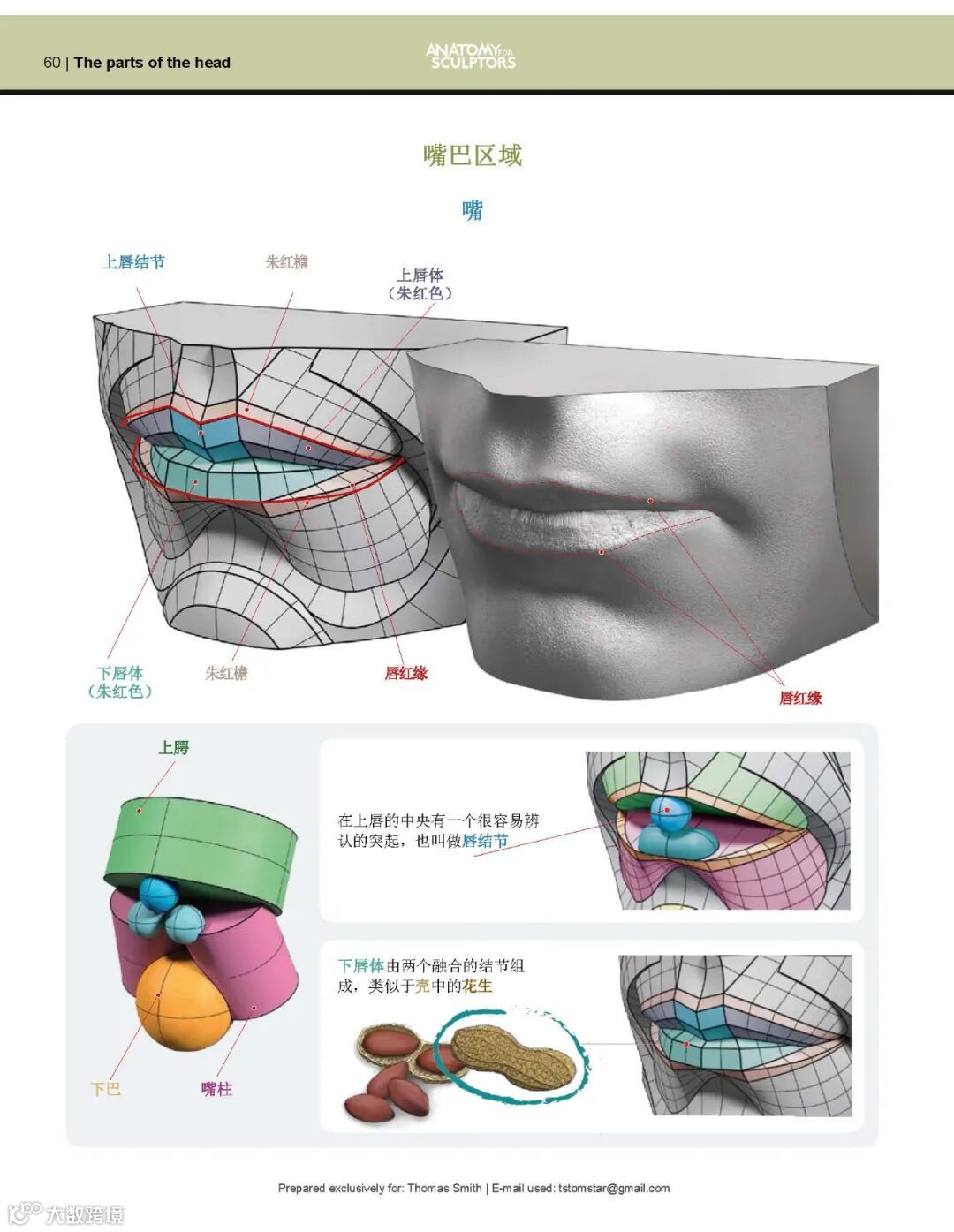 大多数情况下,面部肌肉本身不会创造形式,但会影响形式的变化。换句话说,他们只是在移动聚集而不是聚集。因此,事实证明,不仅解释解剖学很重要,而且解剖学与形式之间的关系也很重要。Anatomy For Sculptors 使用不同的信息处理方法,使其可视化和易于理解。