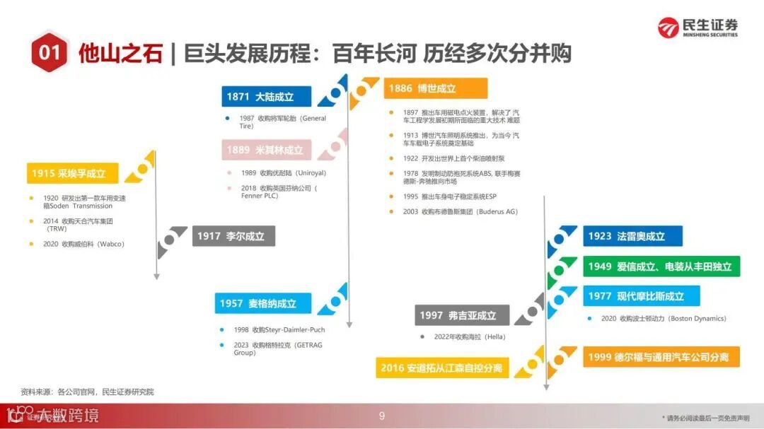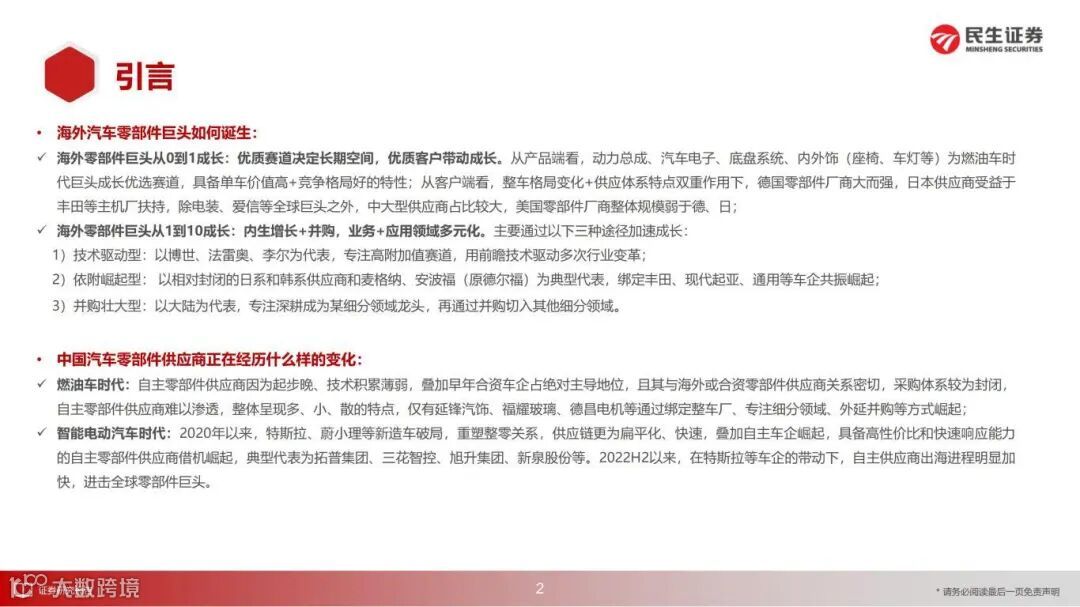 通过对具有代表性的海外零部件巨头的崛起过程进行多方位的梳理归纳,我们发现: