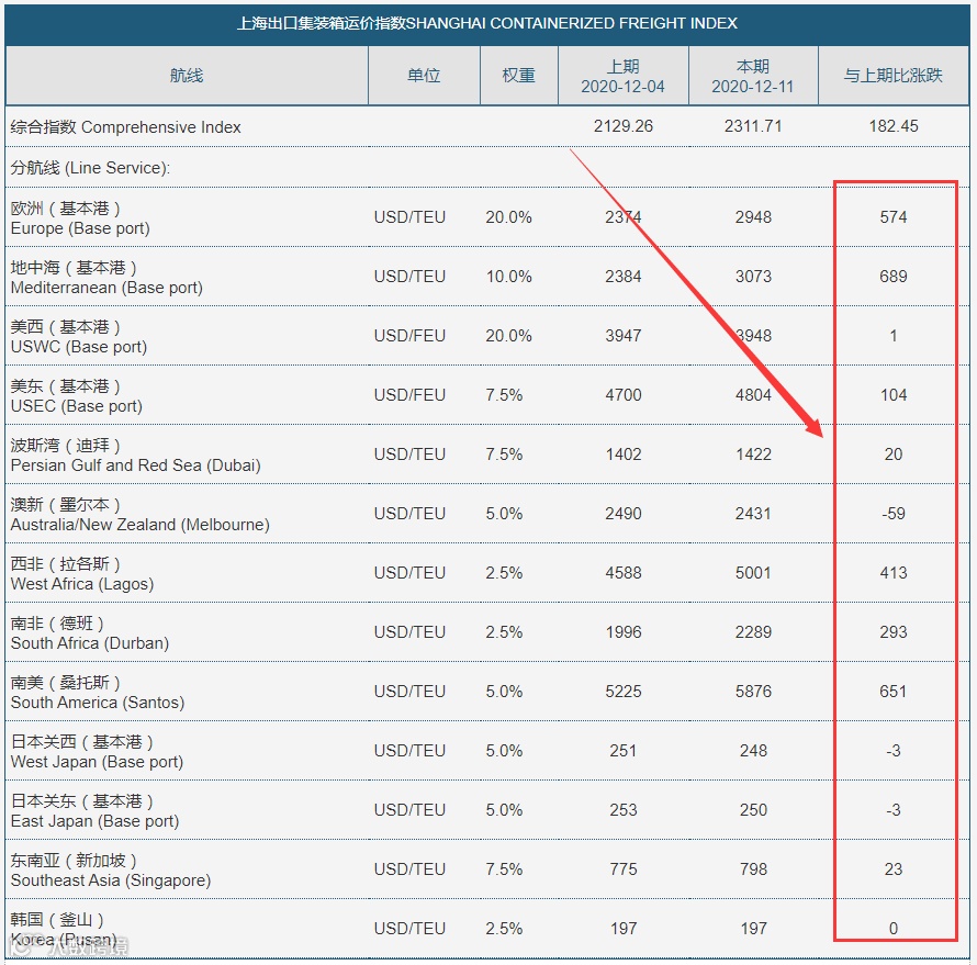 根据上海航运交易所最近一期指数显示,近期海运市场保持高位运行,部分航线涨幅较大。综合指数继续上涨。要出货的朋友们,还是尽早制定出货计划。