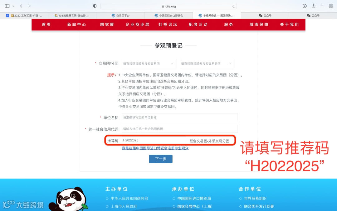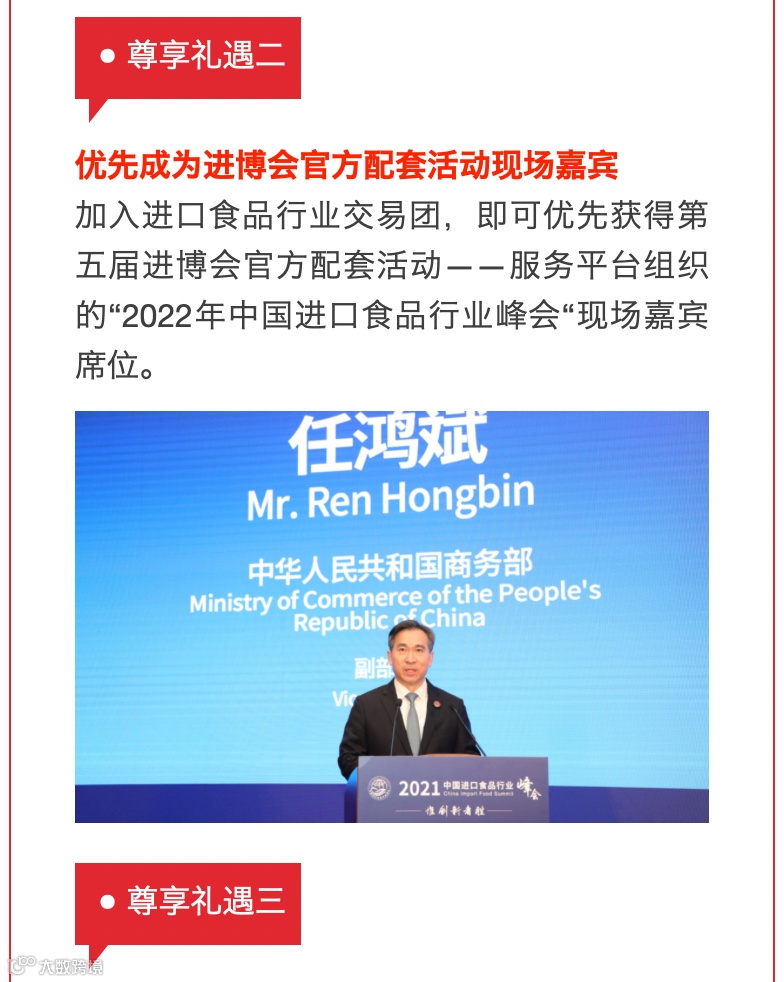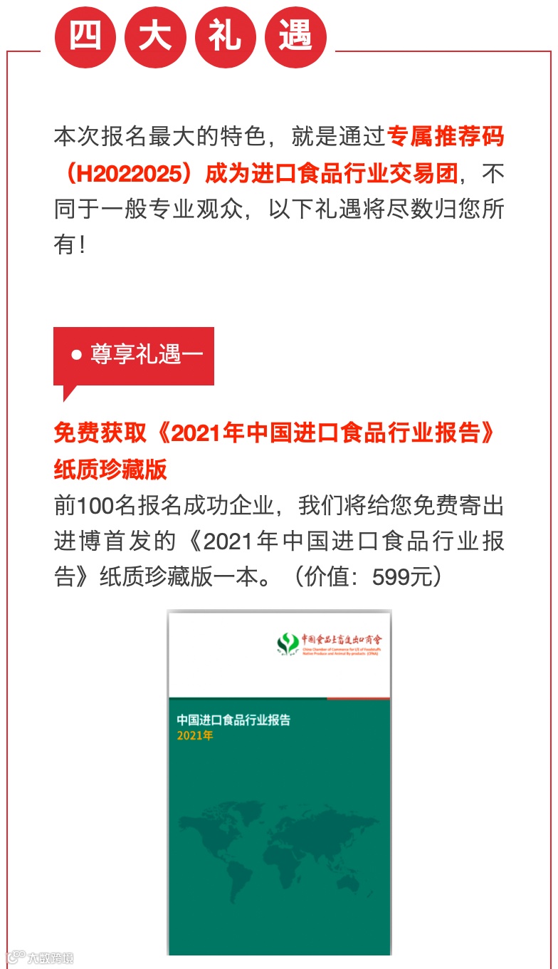 请务必在推荐码处填写“H2022025”,加入进口食品行业交易团:享受进博会特殊礼遇与更多服务!