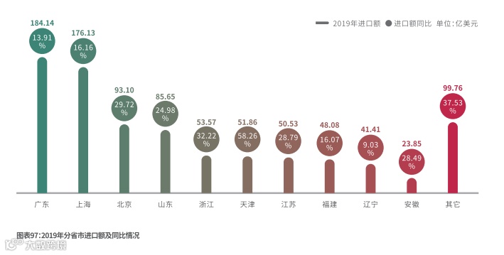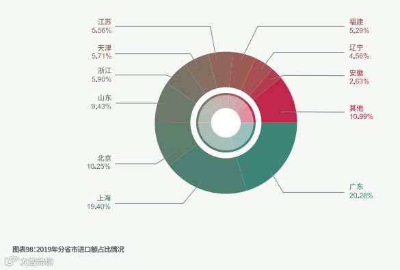 分省市来看,2019年我国进口食品金额排名前三位的省市分别为广东、上海和北京。在进口额排名前十的省市中,天津市食品进口额增速最快,达到51.9亿美元,同比增长58.3%,由2018年的第九位上升至2019年的第六位。