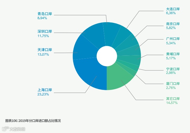 分口岸来看,2019年我国进口食品金额排名前三位的口岸分别为上海口岸,天津口岸和深圳口岸。在进口额排名前十的口岸中,天津口岸食品进口额增速最快。
