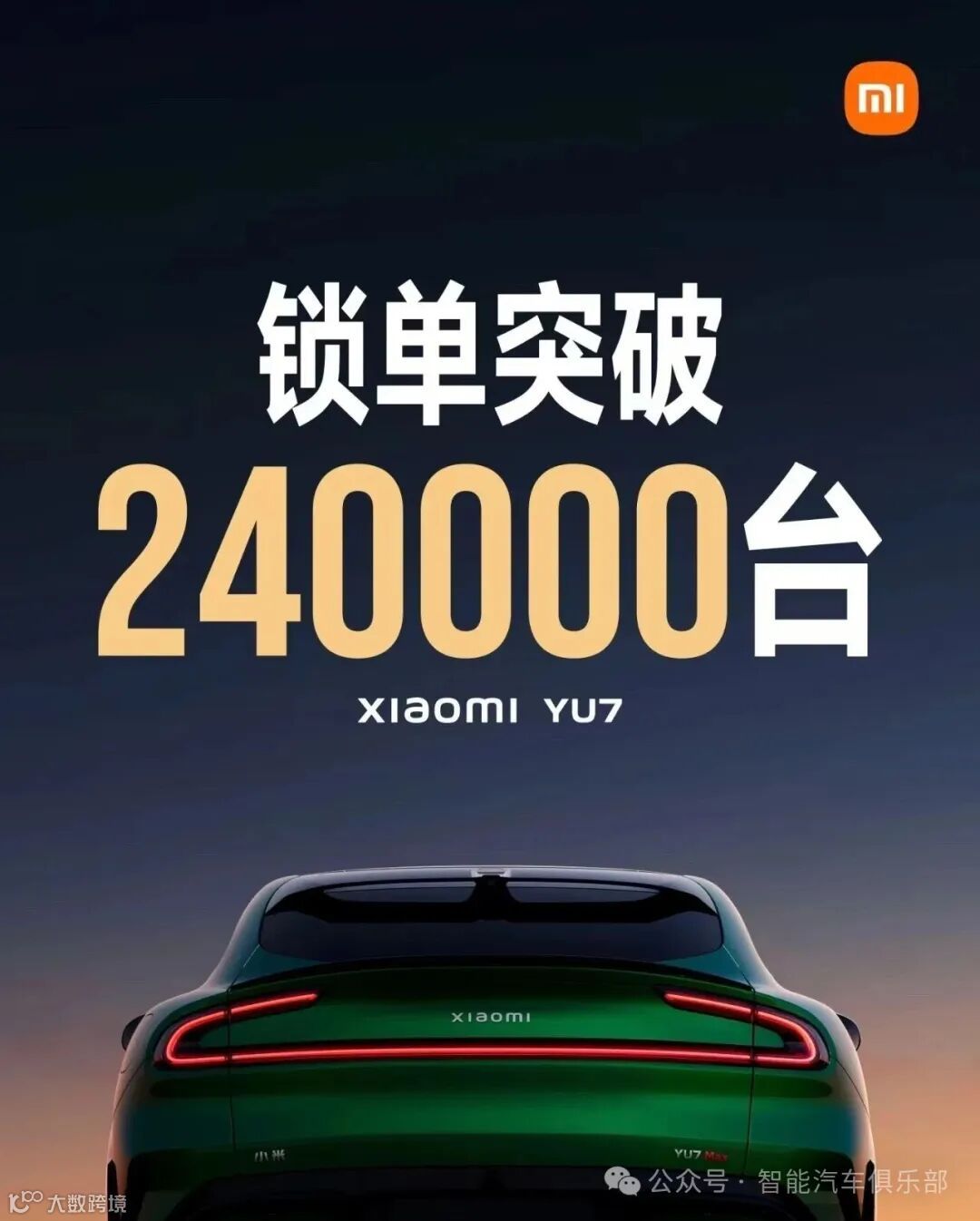 小米首款SUV车型YU7于6月26日上市后引爆市场,3分钟大定突破20万台,1小时攀升至28.9万台,最终锁单量达24万台,创造了新能源汽车领域的现象级纪录。