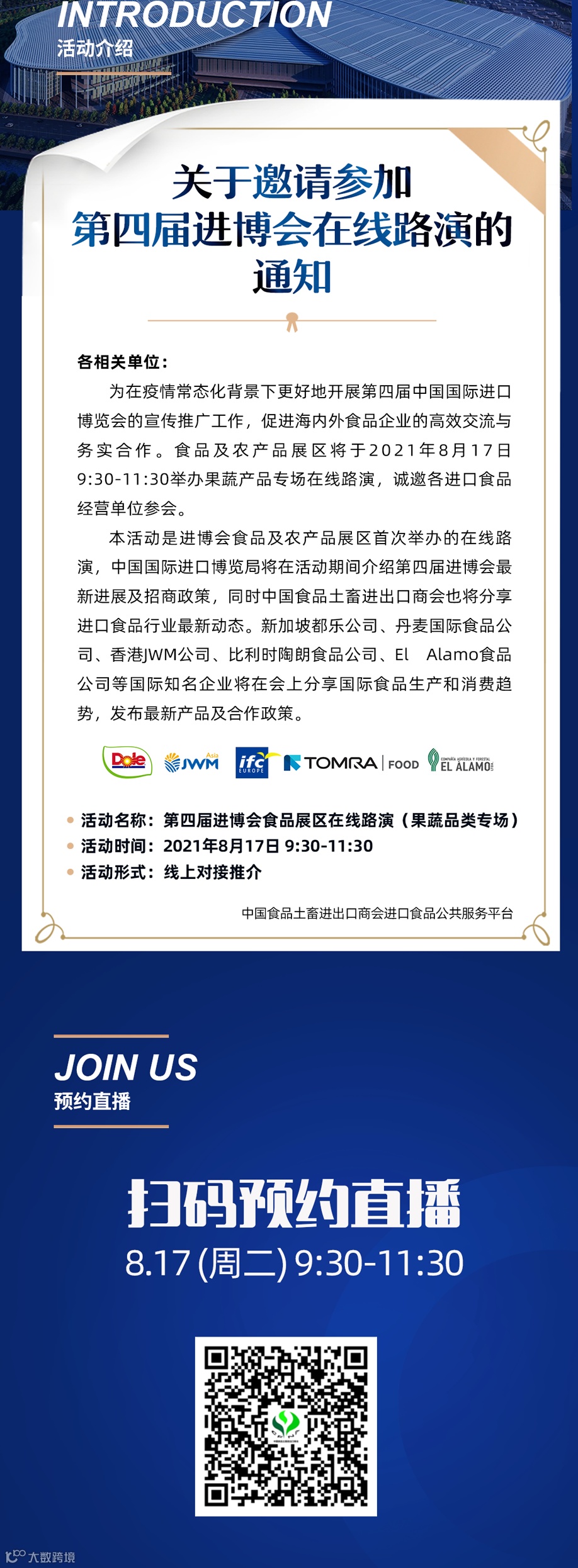 【邀请】第四届进博会食品展区在线路演,让您对接今年最新进博好物