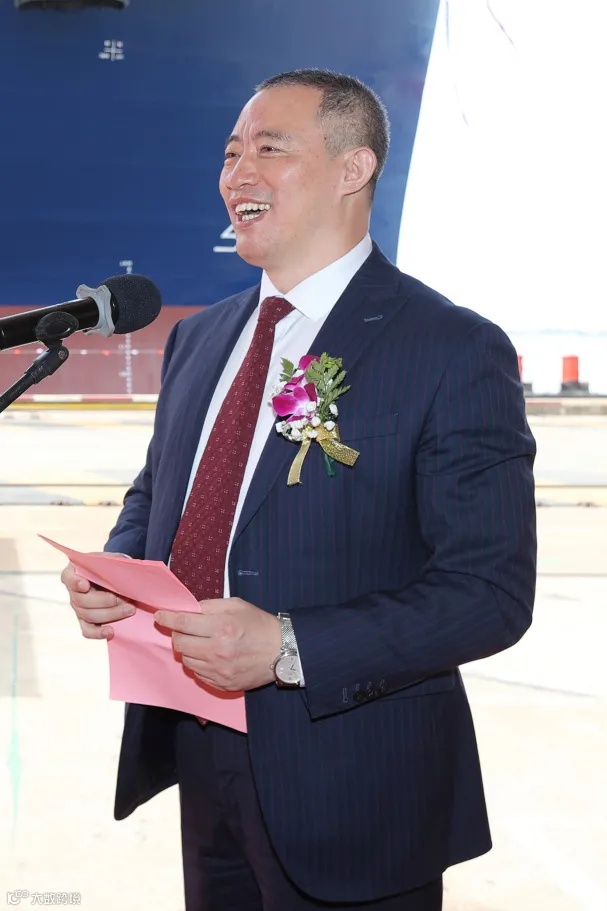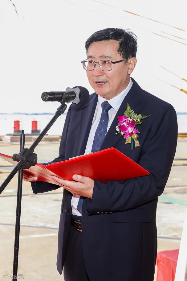 新船命名嘉宾穆秀平女士为“崆峒”号命名砍缆,公司党委副书记、总经理翁红兵,中远海能董事总经理朱迈进和中石油国事执行董事、党委书记武军利致辞。