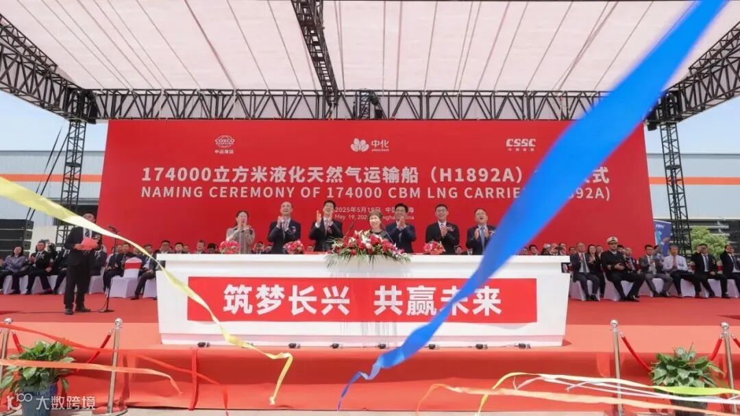 5月19日,17.4万方LNG运输船“远海奋进”号“Ocean Inspiration”在沪东中华新厂区正式命名。