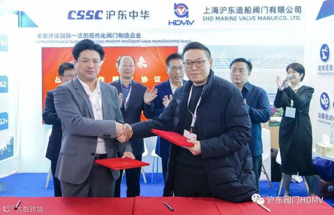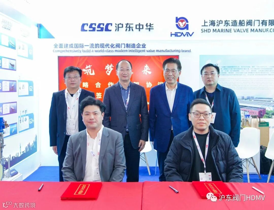 12月6日,沪东中华造船(集团)有限公司旗下上海沪东造船阀门有限公司与江苏新时代造船有限公司在2023年中国国际海事会展期间签署战略合作协议。江苏新时代造船有限公司总经理刘海金、副总经理袁衡,沪东中华造船(集团)有限公司董事长陈建良、副总经理罗乐出席签约仪式。江苏新时代造船有限公司物资部部长戴睿、上海沪东造船阀门有限公司董事长金宁代表双方签署协议。