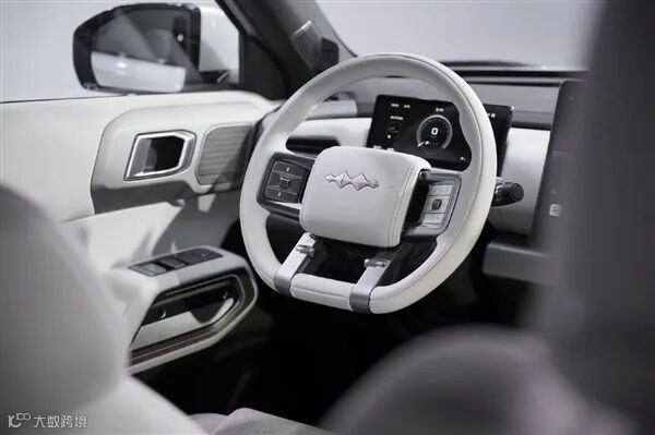 钛3内饰走的是科技未来风,整体采用黑白搭配的简约配色,沿用了方程豹系列的设计风格,提供全液晶仪表盘、悬浮式中控屏。
