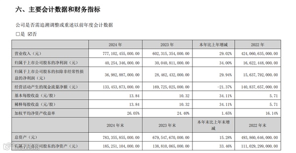 比亚迪2024年归母净利润为402.54亿元,同比上升34.00%,每股盈利为人民币13.84元,董事会建议派发末期股息每股人民币3.974元(含税)。