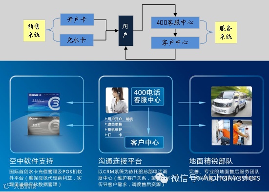 中国电信式营销模式,提供终端净水服务的商业模式,机卡分离,只卖卡(开户卡和充水卡),提供净水服务。