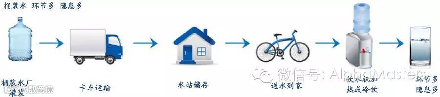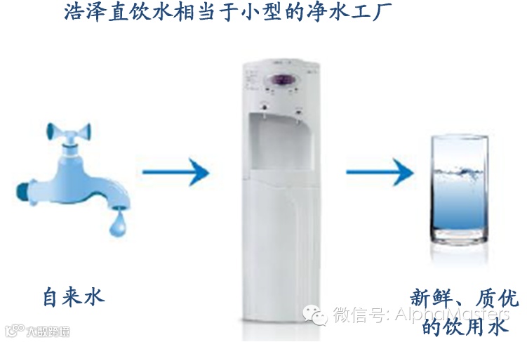 浩泽VS桶装水:传统“桶装水+饮水机”售水模式环节繁琐,隐患较多,二次污染,假水假桶等;浩泽直饮水相当于小型净水工厂。