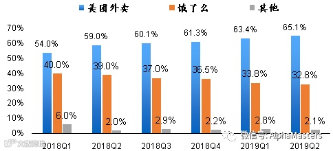外卖的市场份额保持在65%。