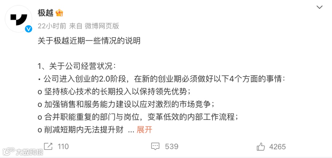 继昨日极越汽车CEO夏一平发布内部信坦言公司目前遇到困难,进入创业2.0阶段后。