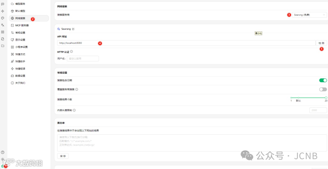 3,配置SearXNG到cherry studio中: