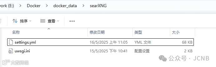 打开自己建的路径:E:\Docker\docker_data\searXNG