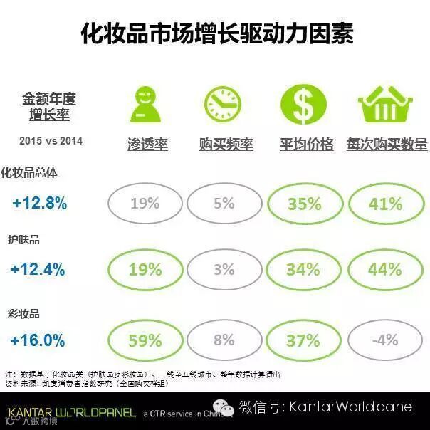 随着中国经济进入“新常态”,快速消费品市场正式迈入增长放缓的阶段。凯度消费者指数全国城市家庭购买样本组的数据显示,中国快速消费品市场2015年的销额增长首次探底到3.5%。相较之下,化妆品市场12.8%的销售额增长,显得十分抢眼。