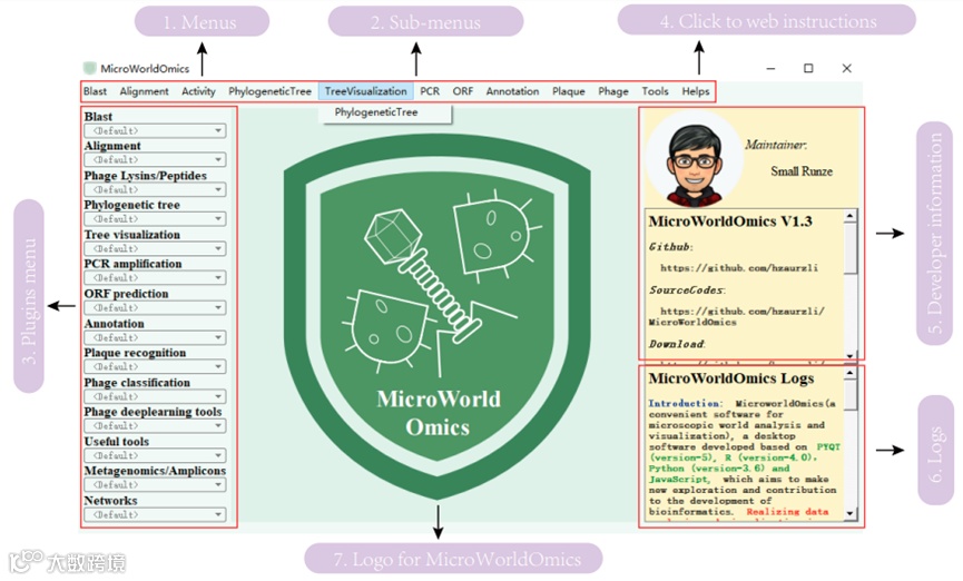 With the production of a large number of high-throughput sequencing data in the fields of ecology, medicine and pharmacy, the complexity of data analysis and interpretation is increasing. However, the microbiome and virome field still lacks a convenient and programming-free desktop application for comprehensive analysis of microbiome and virome data, especially in the context of virome analysis and "dark matter" exploration. Therefore, a plugin development model of desktop service MicroWorldOmics is proposed to provide a convenient one-stop desktop analysis application for life science and biomedical fields.
