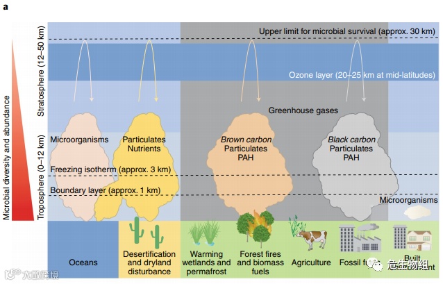 温室效应除了导致热秋等反常气候的出现,还直接影响了我们赖以生存的空气!是的,你没有看错,空气。在大气中,有大约10^24微生物细胞。Stephen D. J等人在Nature Microbiology杂志发表了评论性论文<