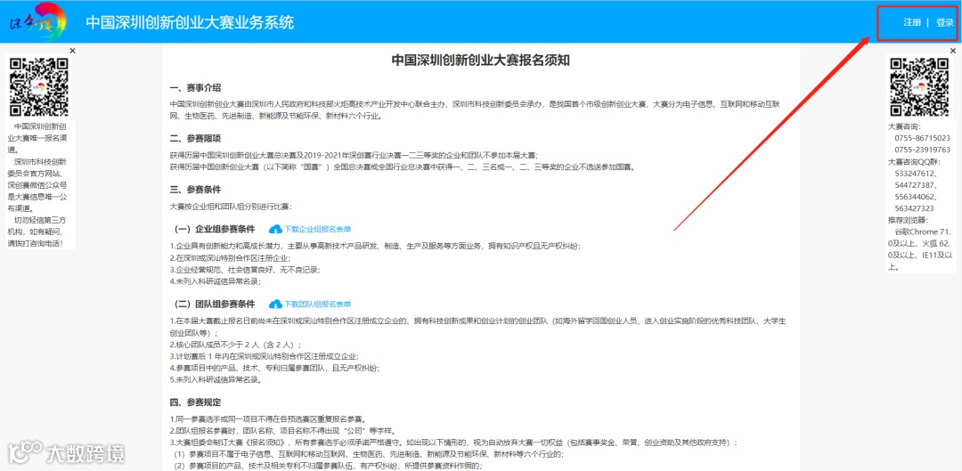 进入报名系统(深创赛官网:https://sticapply.sz.gov.cn/scs),注册并登录