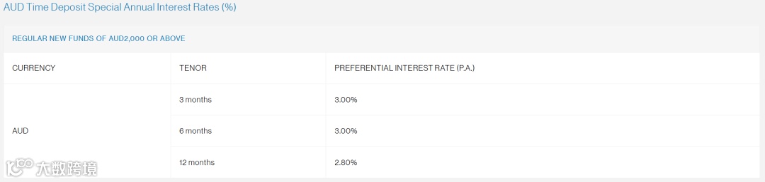 澳元存款利率: