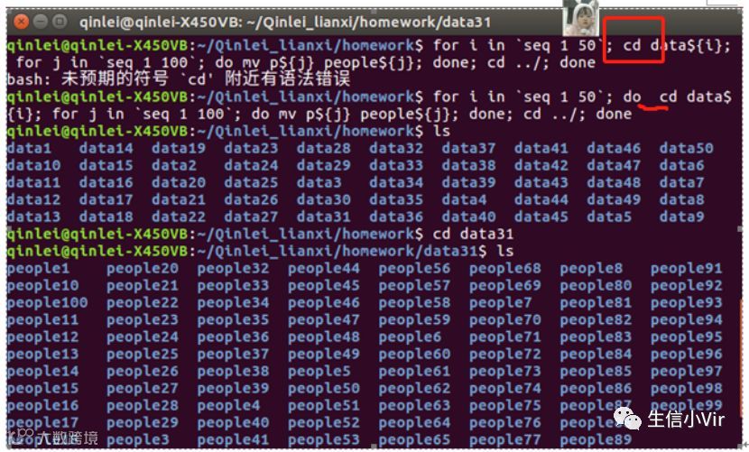 今天就分享下文件的批量新建以及批量重命名吧,主要用到的命令有mkdir 、for循环以及mv,且看具体实例。例如给1到50天,每天建一个文件并命名为data1 data2 一直到data50,然后每天的文件里再新建100个文件。命名为P1 P2 一直到P100。直观的方法是先建50个文件,然后再打开每天的文件,再新建100个文件,耗时O(nm), 但是如果用for循环,一步到位,命令如下: