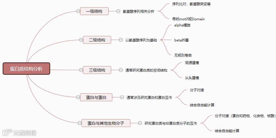 通常情况下,我们认为的蛋白质结构分析可能都是三级结构分析、蛋白和蛋白互作或蛋白与其他生物分子互作的分析,这种分析通常在结构生物学领域常见。事实上,做生物信息学的学生也会经常涉及蛋白质结构分析。一级结构分析诸如寻找与蛋白质功能相关的Domain或motif(例如信号肽预测、跨膜结构预测等等)这是经常的(湿实验学生经常用),这种分析方法通常基于序列比对,配合正则表达式即可。