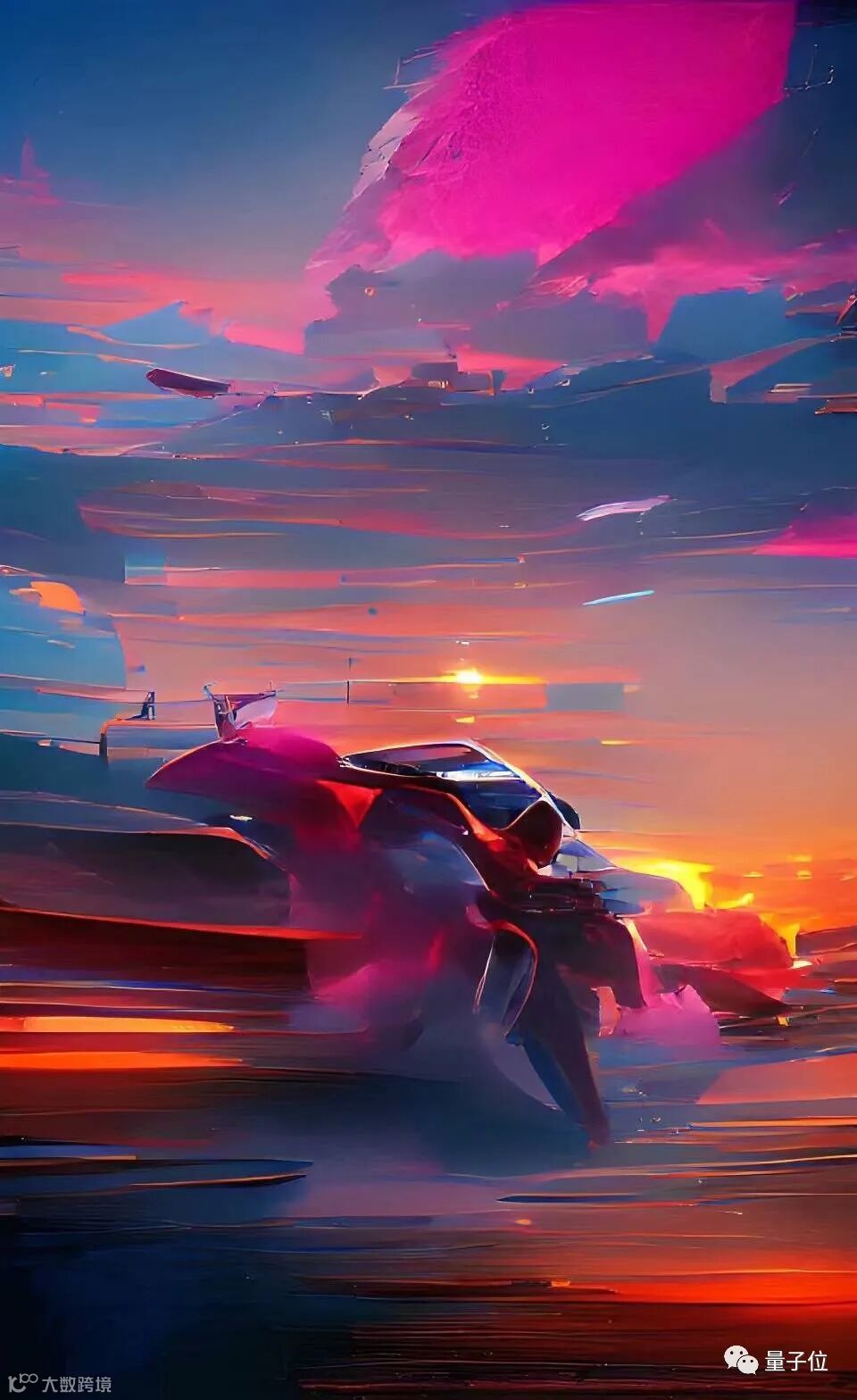 比如输入落日飞车四个字,在AI的“想象”中会是这样: