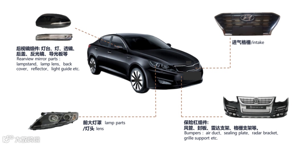 我们的外饰产品包括后视镜组件、保险杠组件、进气格栅及其他车身饰件,通过新材料、新技术运用,为客户提供环保、可持续的产品。