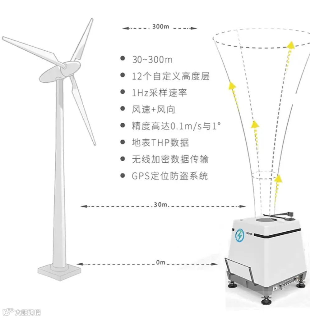 传统测风方式主要靠测风塔,通常它在不同高度搜集风速、风向、风压等信息。但测风塔在很多场景条件下会受限制,比如高度受限、生态影响红线区、地域属性影响不让布设、风机机位选址受限,布设成本高等等,这些局限性让风能资源的评估和预测变得困难和无从下手。