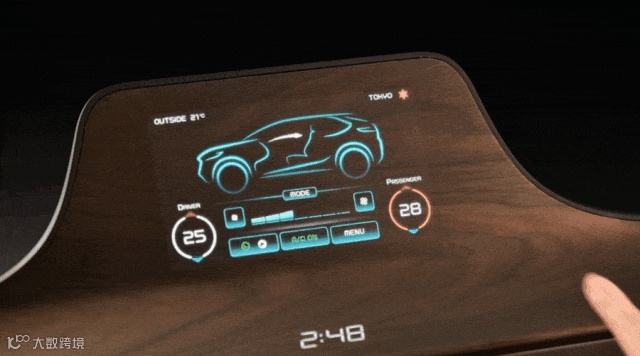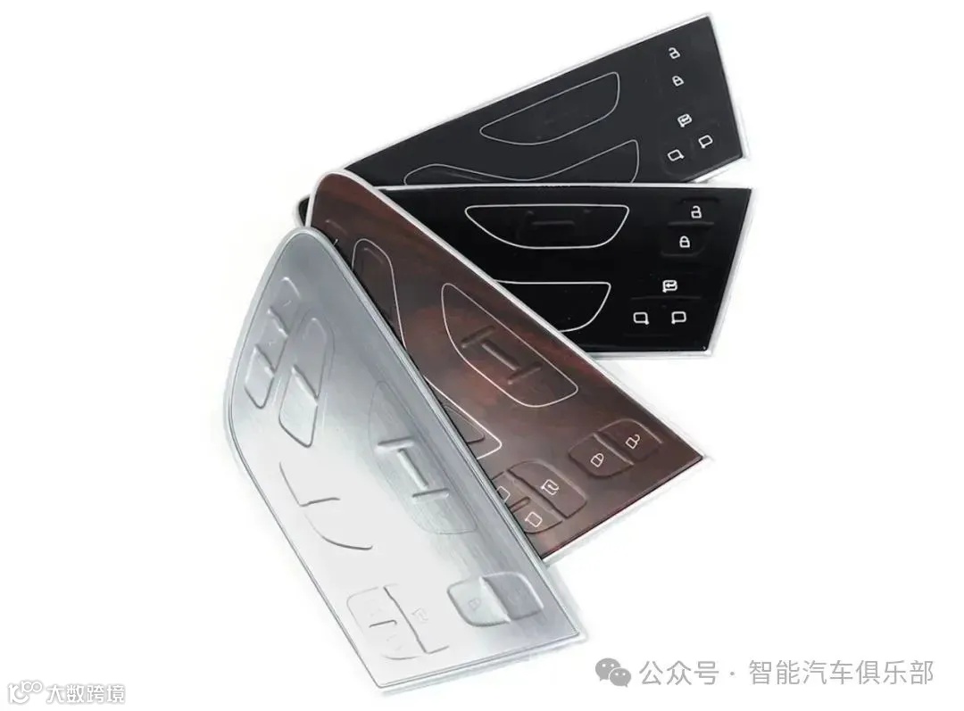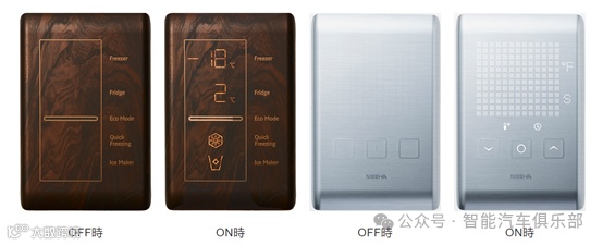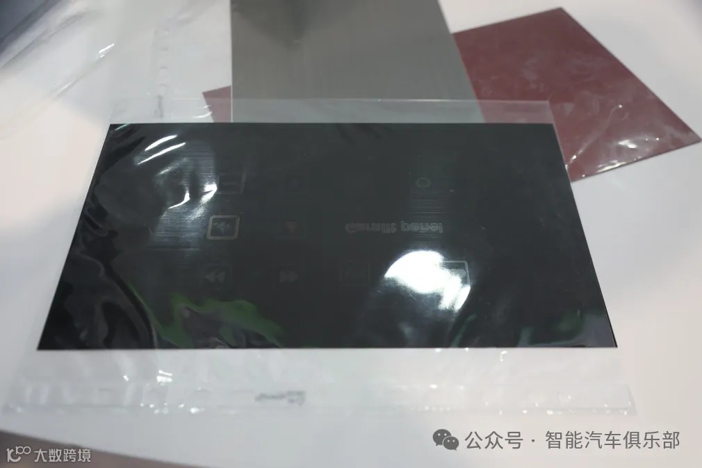 日写这种结合显示屏的隐藏式显示设计方案的IMD工艺可以实现多种表面如木纹、金属、皮革和织物等。