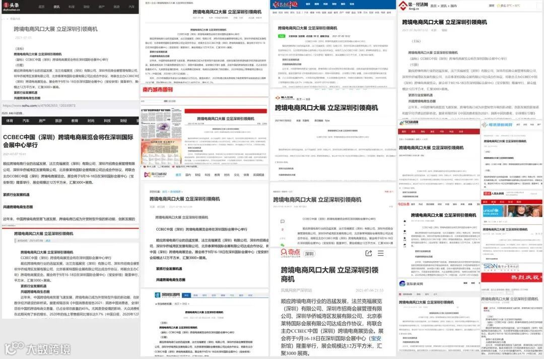 目前展会的全媒体宣传推广活动已全面启动!全面覆盖线下纸媒、户外广告媒体、线上门户、知名跨境电商平台,以及极具裂变效应的新媒体平台,形成矩阵效应。CCBEC深圳跨境电商展将不断整合媒体资源和自身优势,通过线上线下有机结合的方式对展会进行全面推广宣传,海量曝光与流量持续兑现!