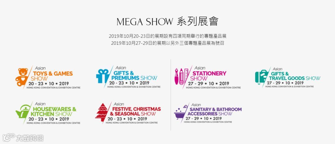 二十多年来,每年十月下旬于香港举办的Mega Show系列展会一直是环球厂商展示最新产品和买家采购“亚洲制造”产品的重要枢纽,现已成为环球买家每年十月到亚洲和华南地区做巡回采购行程中必到的一站。Mega Show一期展会举办历史长达27年,二期展会亦已举办了17届,是不折不扣的最大型亚洲产品采购盛会。且展会举办时间与广交会重叠,参展商可与广交会共享客户资源。