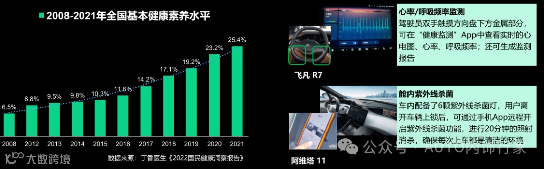 同时,智能汽车逐步向“第三生活空间”发展,各类监测传感器及生物识别技术不断进步,智能座舱健康监测及舱内消杀已经成为可能,随着人们健康观念的进步及技术发展,乘员健康将成为智能座舱的一个新主题。