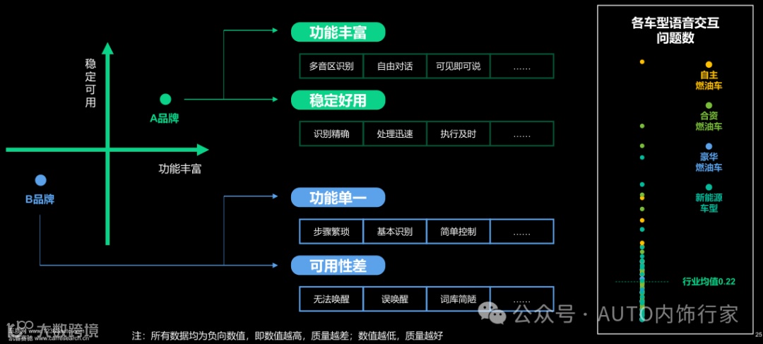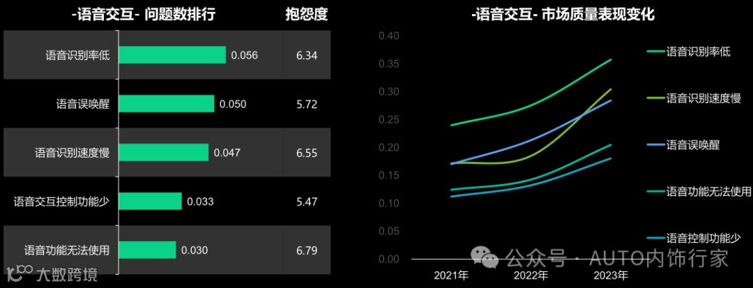 语音交互问题多集中在影响正常使用的感知类问题上,控制功能多样性的问题较少、抱怨度较低。
